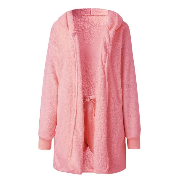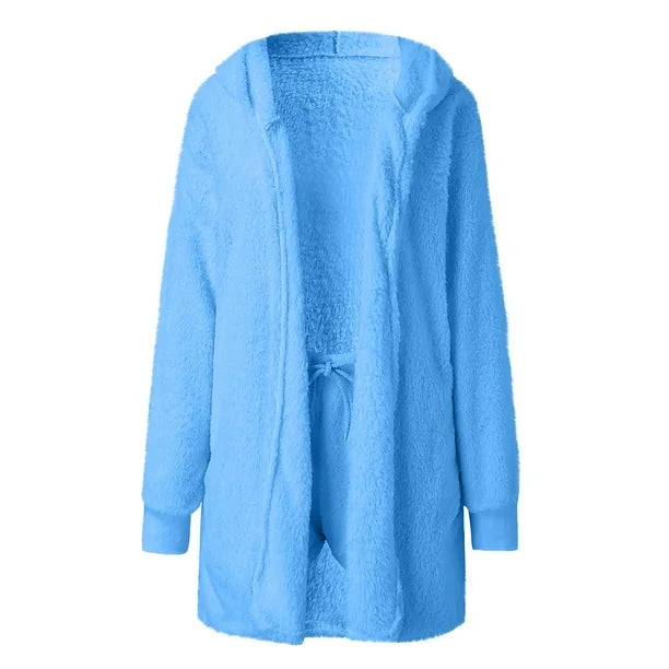 The Comfy 3-Piece Set combines a long cardigan, lightweight top, and flowing pants for a harmonious look.