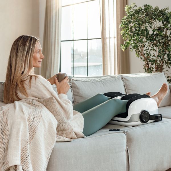 Enjoy a professional shiatsu massage at home. With its easy-to-use built-in controls, soothing heat, and air compression, this machine relieves pain, stimulates circulation, and relaxes your legs after a long day.